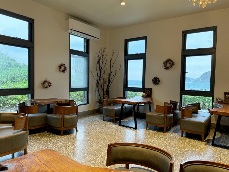 山海芳園景觀咖啡廳位於新北市萬里國聖埔海灘東側岬角高點處,是北海岸看海、喝下午茶的最佳景觀咖啡廳。山海芳園右側是一大片美麗的海蝕平台,遠方就是野柳海岬,海天一色的山海美景及視野,讓人心曠神怡。